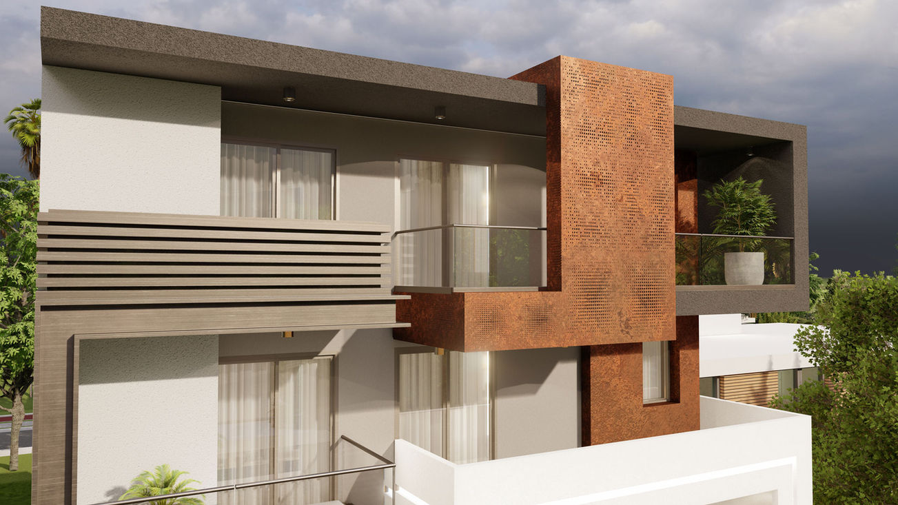 Boxed Volume is a contemporary style builder floor in gurugram with total project area spanning to 342 SqYd. Design has a rustic tone distressed texture, while whites neutralize the overall effect of rustic panels.